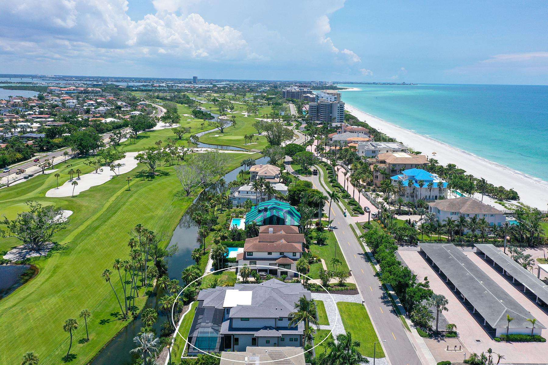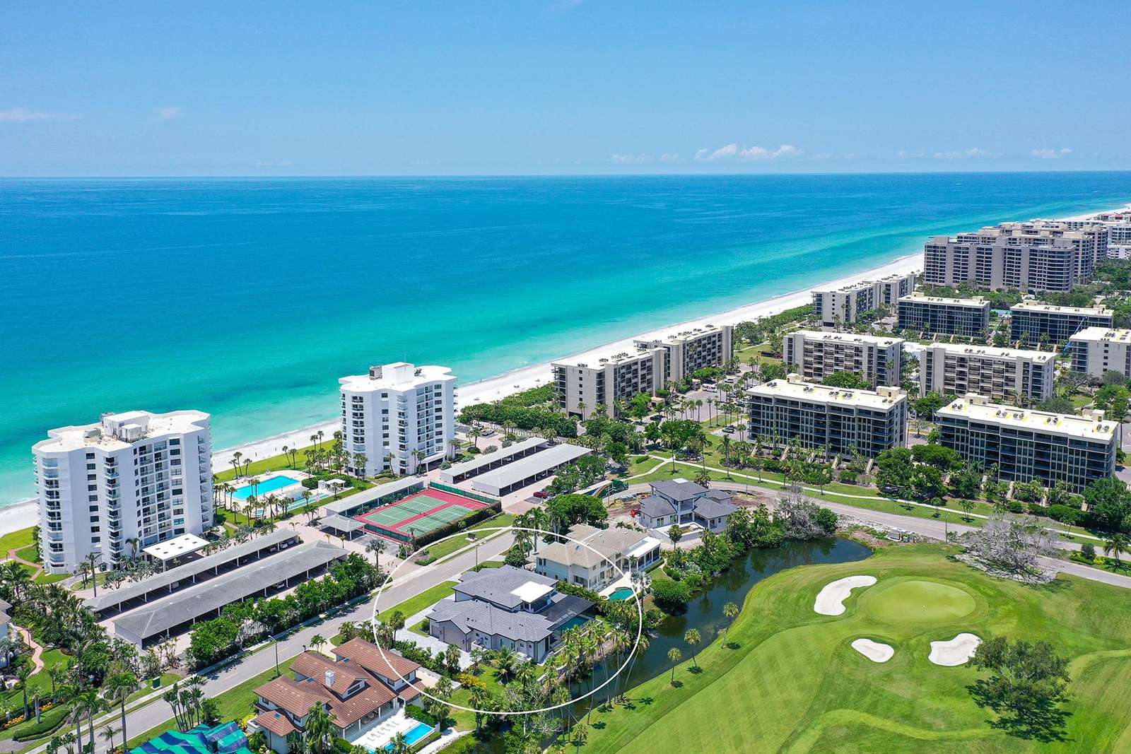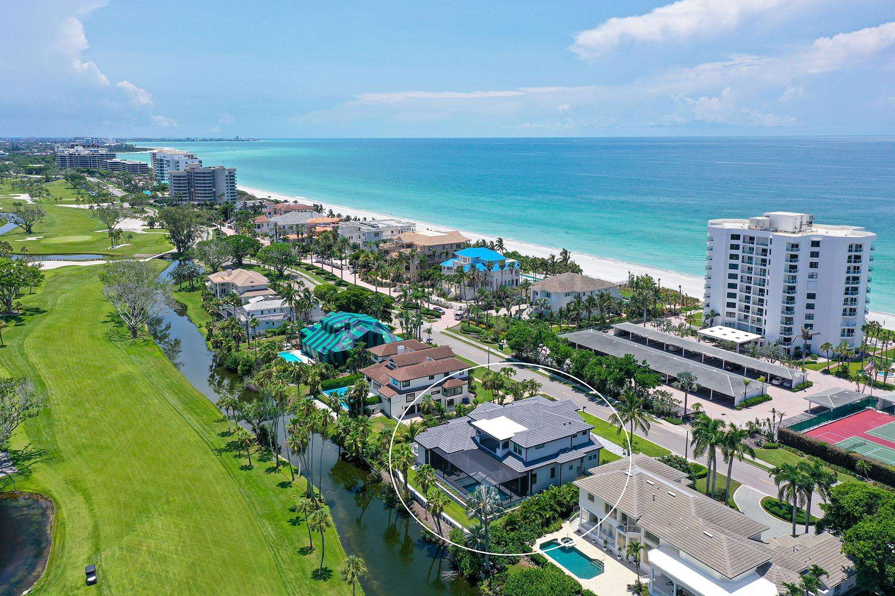 This home is located behind the coveted gates of the Longboat Key Club. This 4 bedroom home is only 150 yards away from the beach. The magnificent two-story-high volume ceilings in the formal living and dining areas offer natural light and vibrant green golf course views through glass sliders and transom windows.