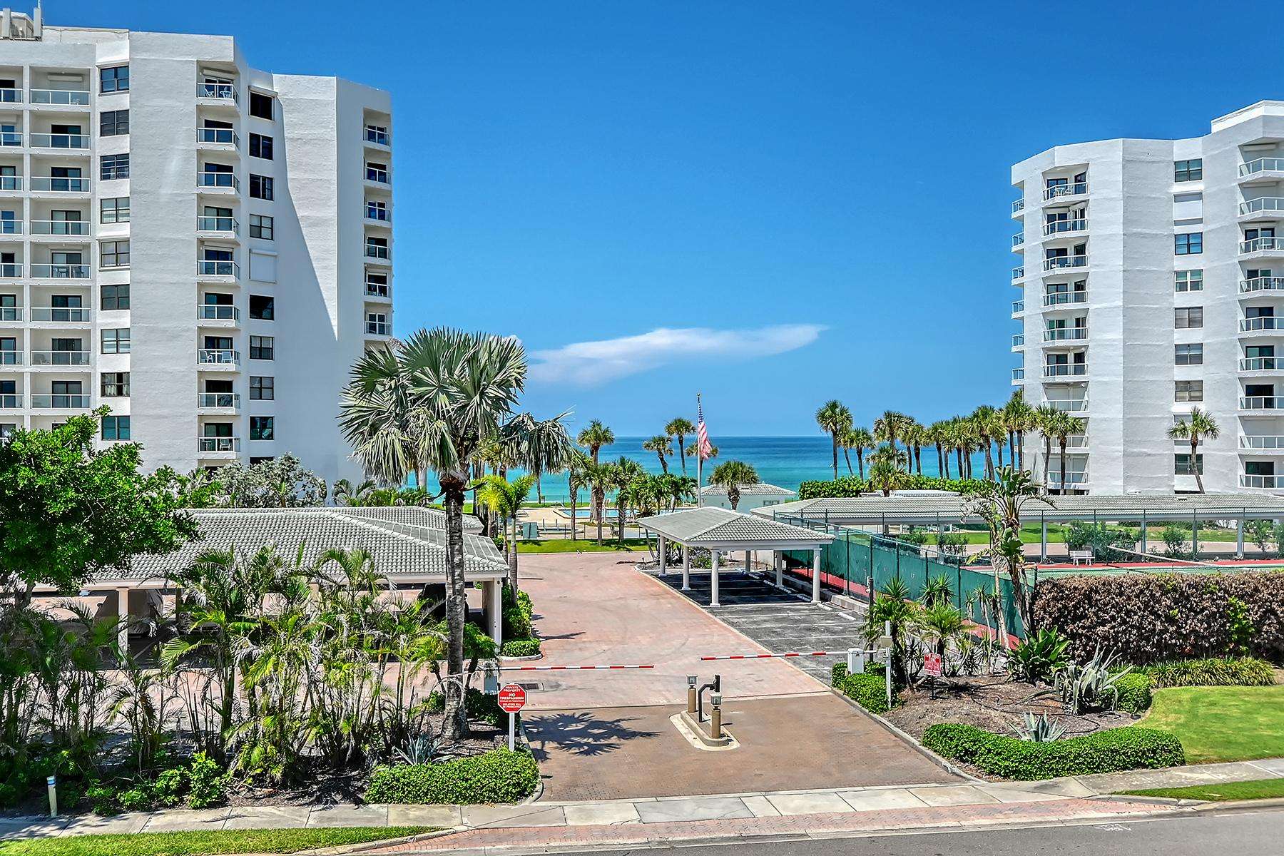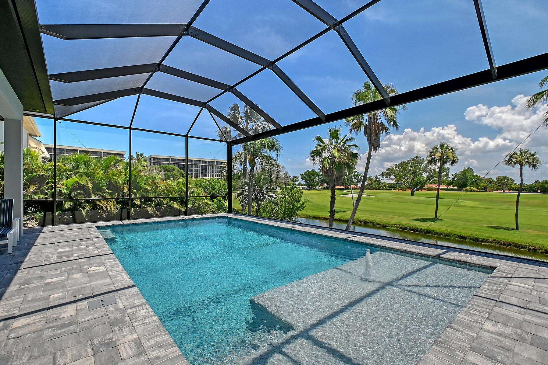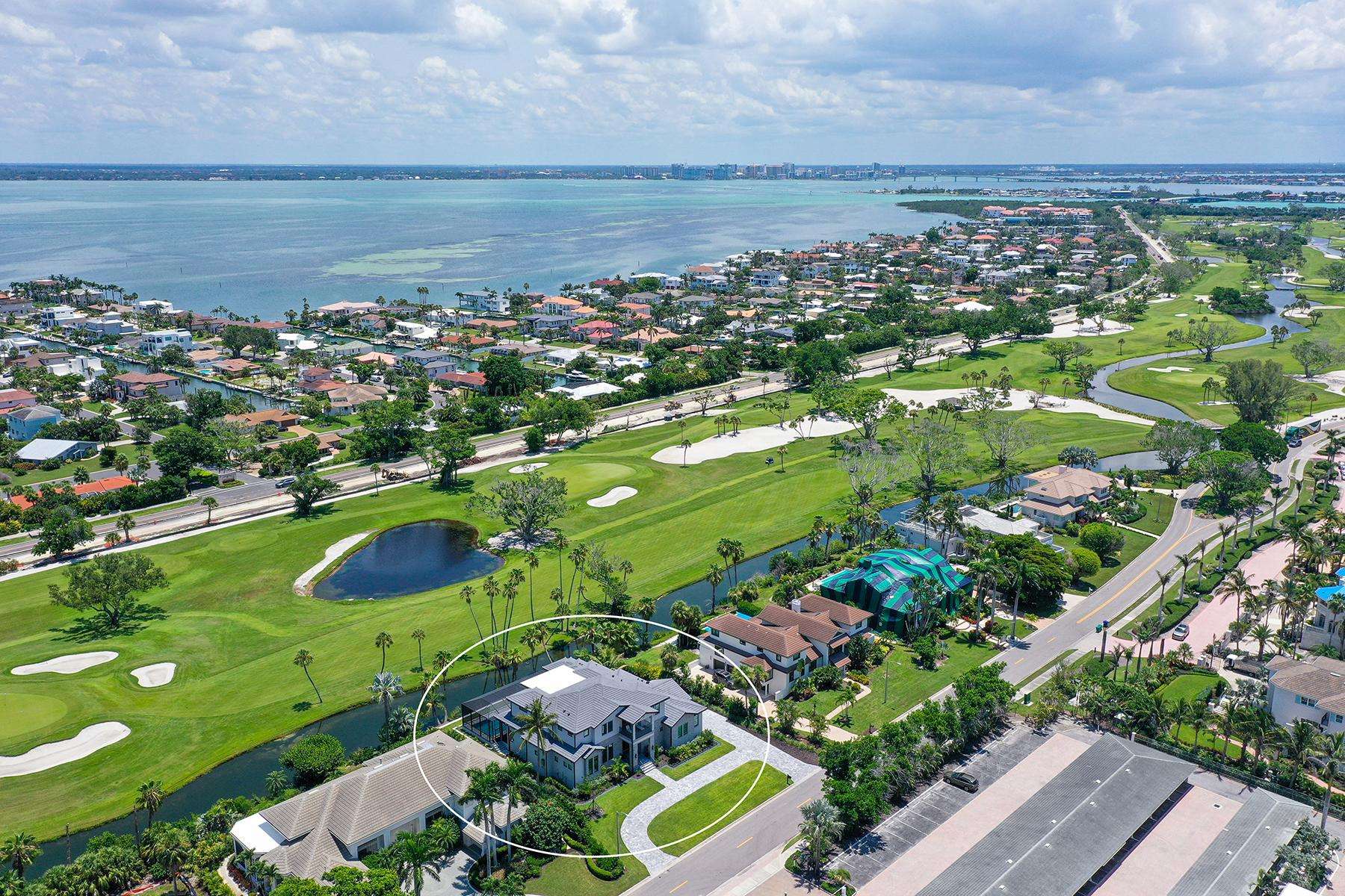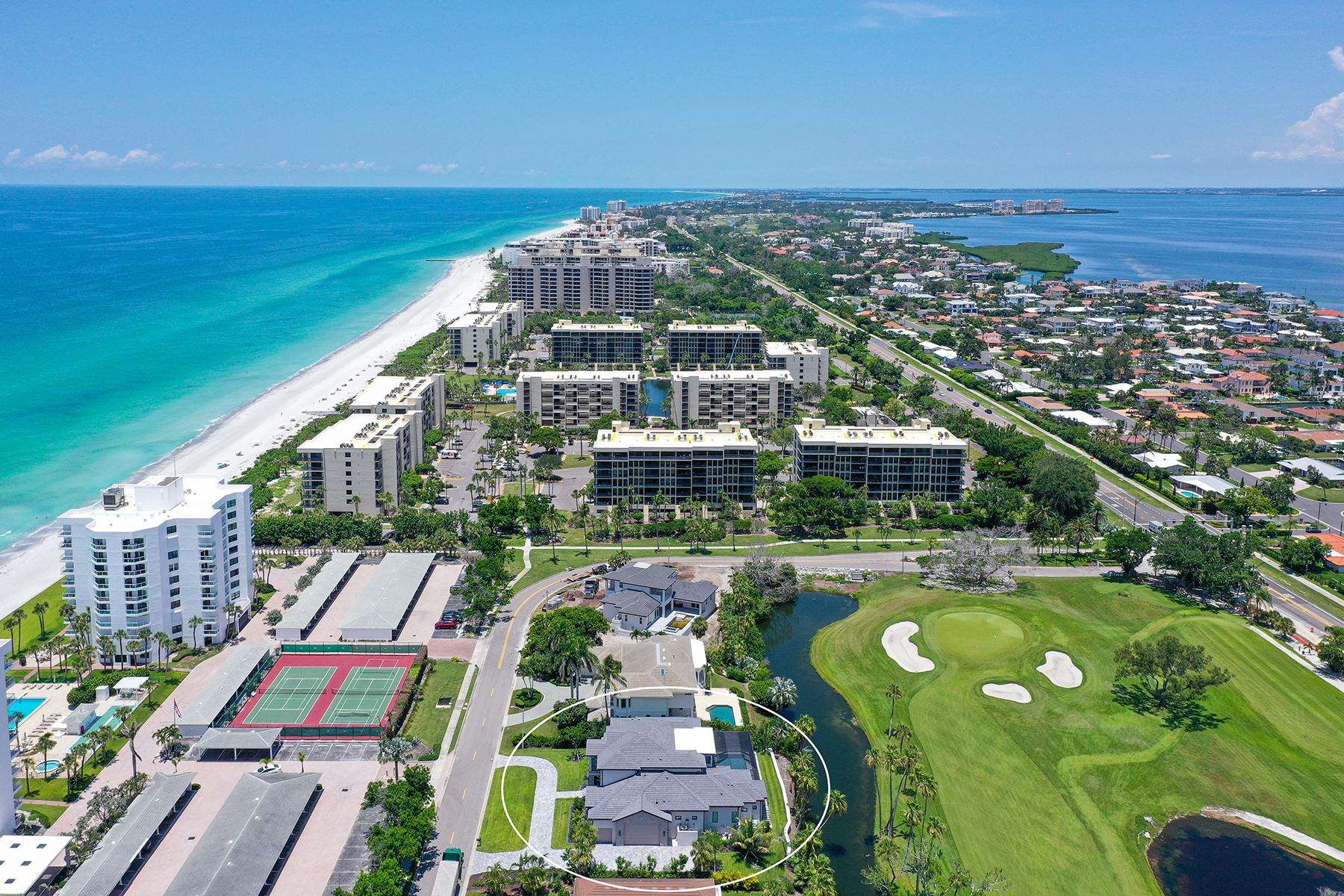 This home is located behind the coveted gates of the Longboat Key Club. This 4 bedroom home is only 150 yards away from the beach. The magnificent two-story-high volume ceilings in the formal living and dining areas offer natural light and vibrant green golf course views through glass sliders and transom windows.