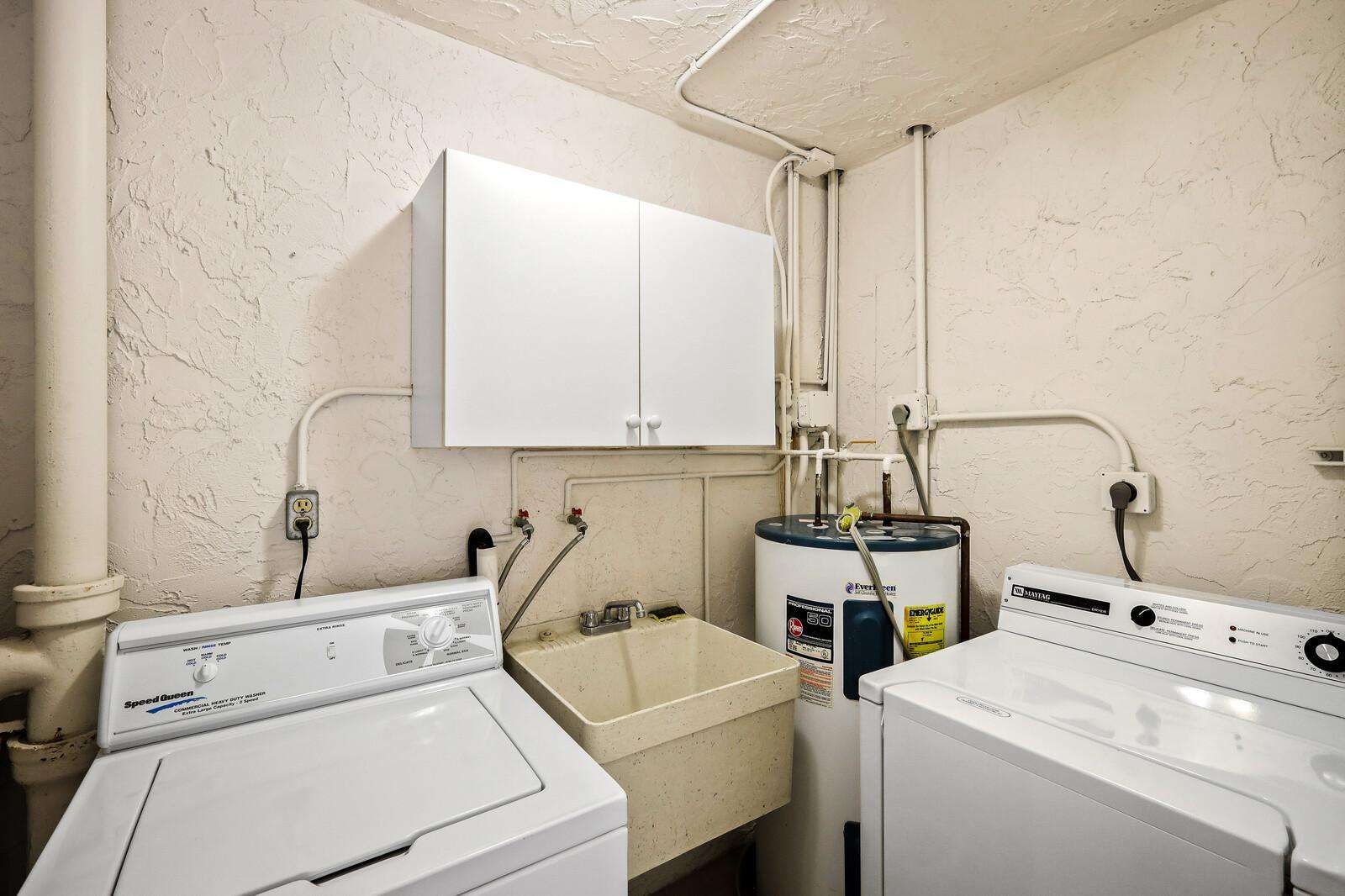 Bright, functional complimentarylaundry room in building along hall