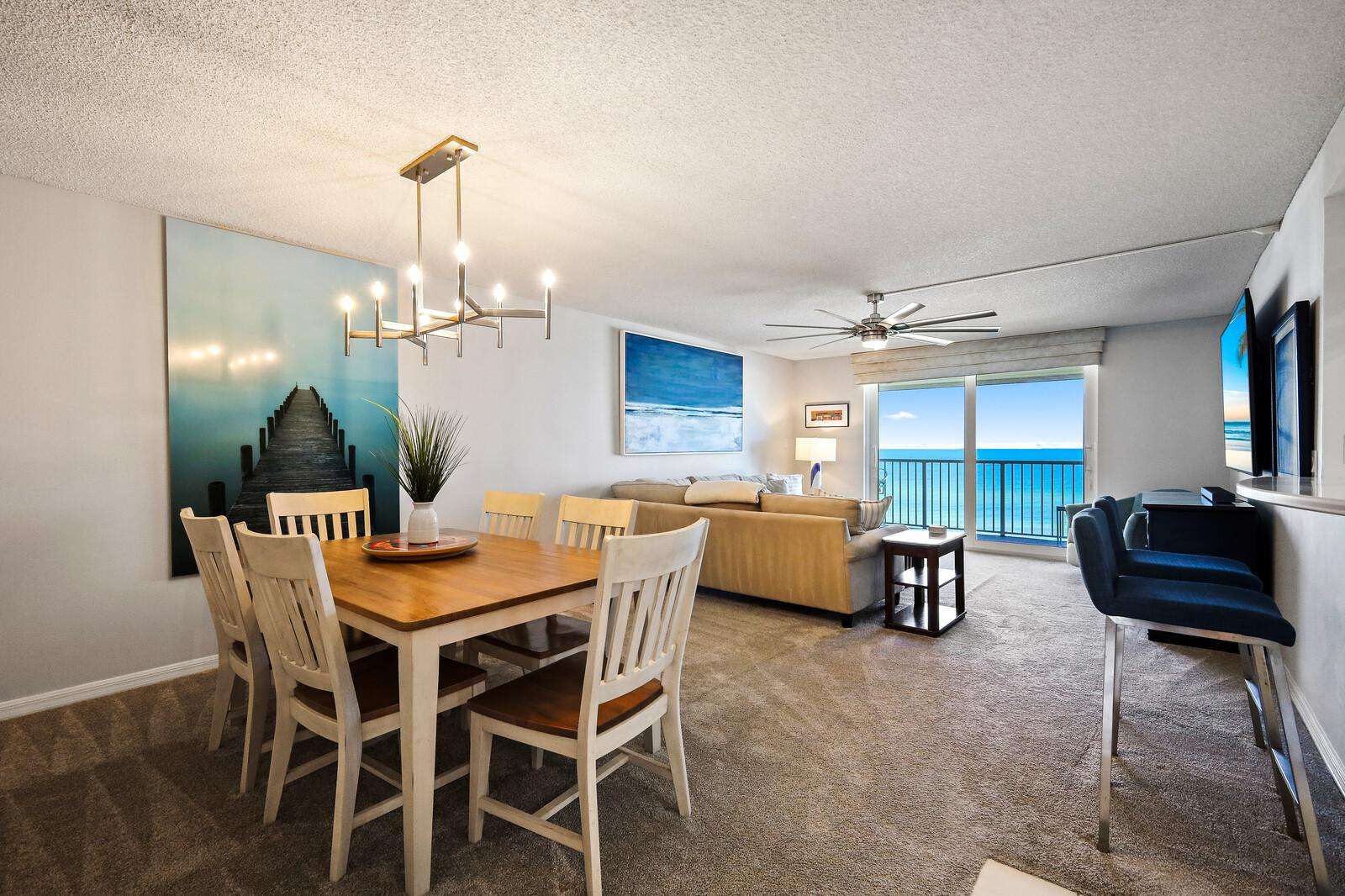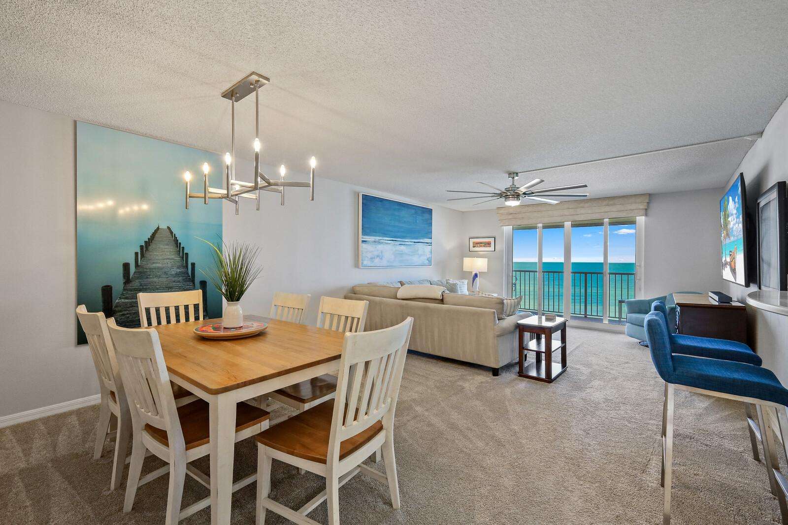 Spacious dining and living area with stunning ocean views
