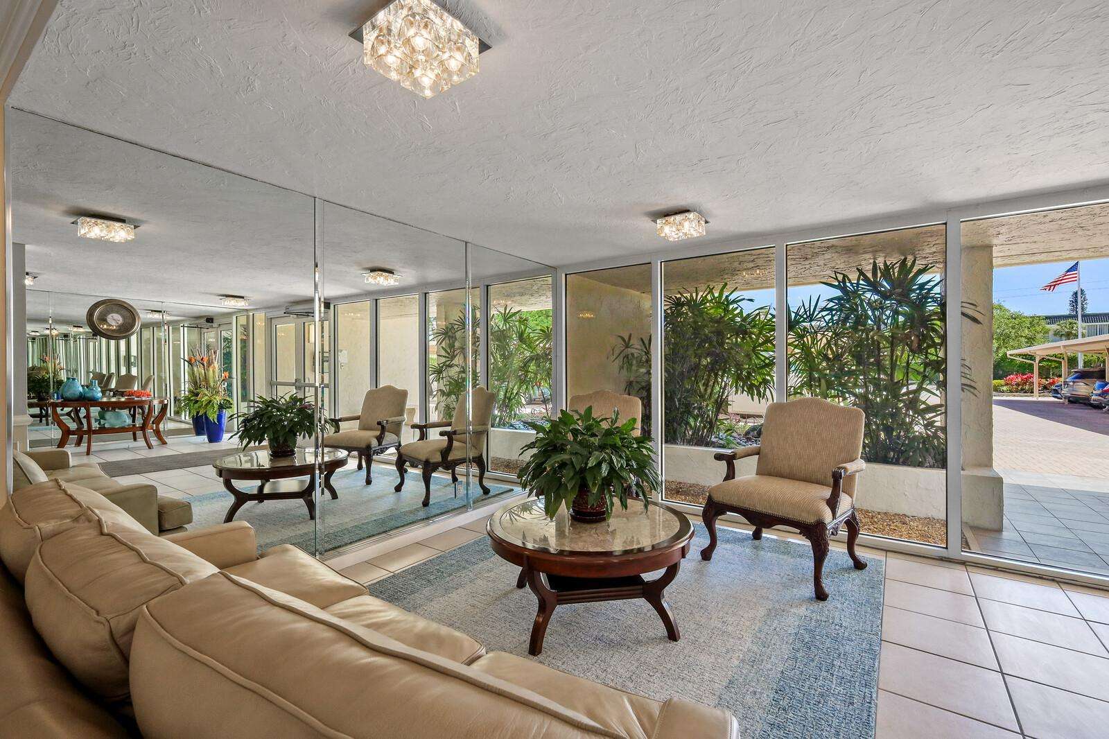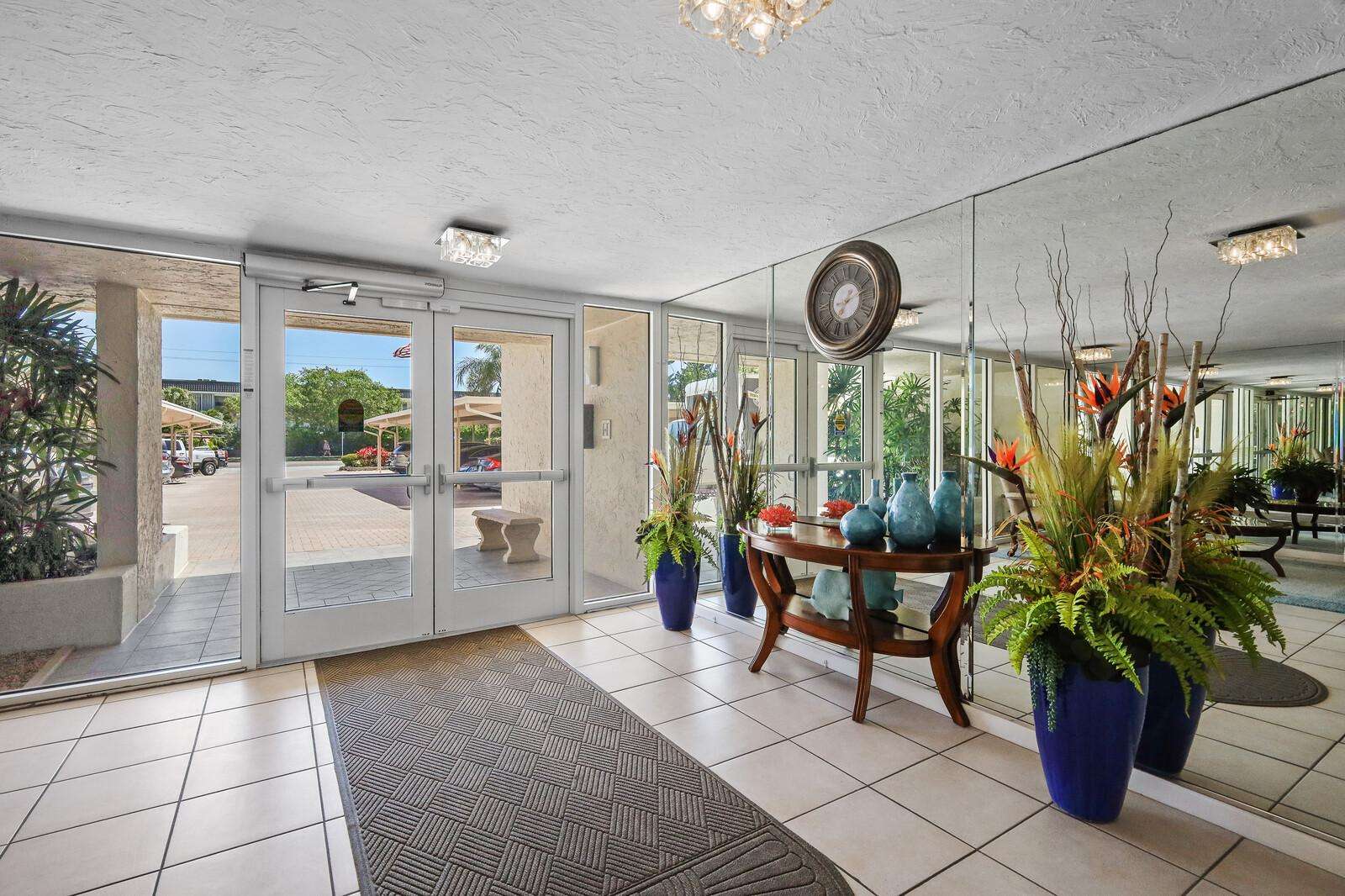 Clubhouse bright and airy entryway with garden views and natural light
